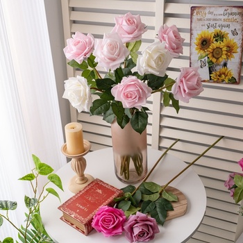 ורדים מגע אמיתי גבעולים ארוכים עלה לרגל חתונה קישוט פרחים מלאכותיים
